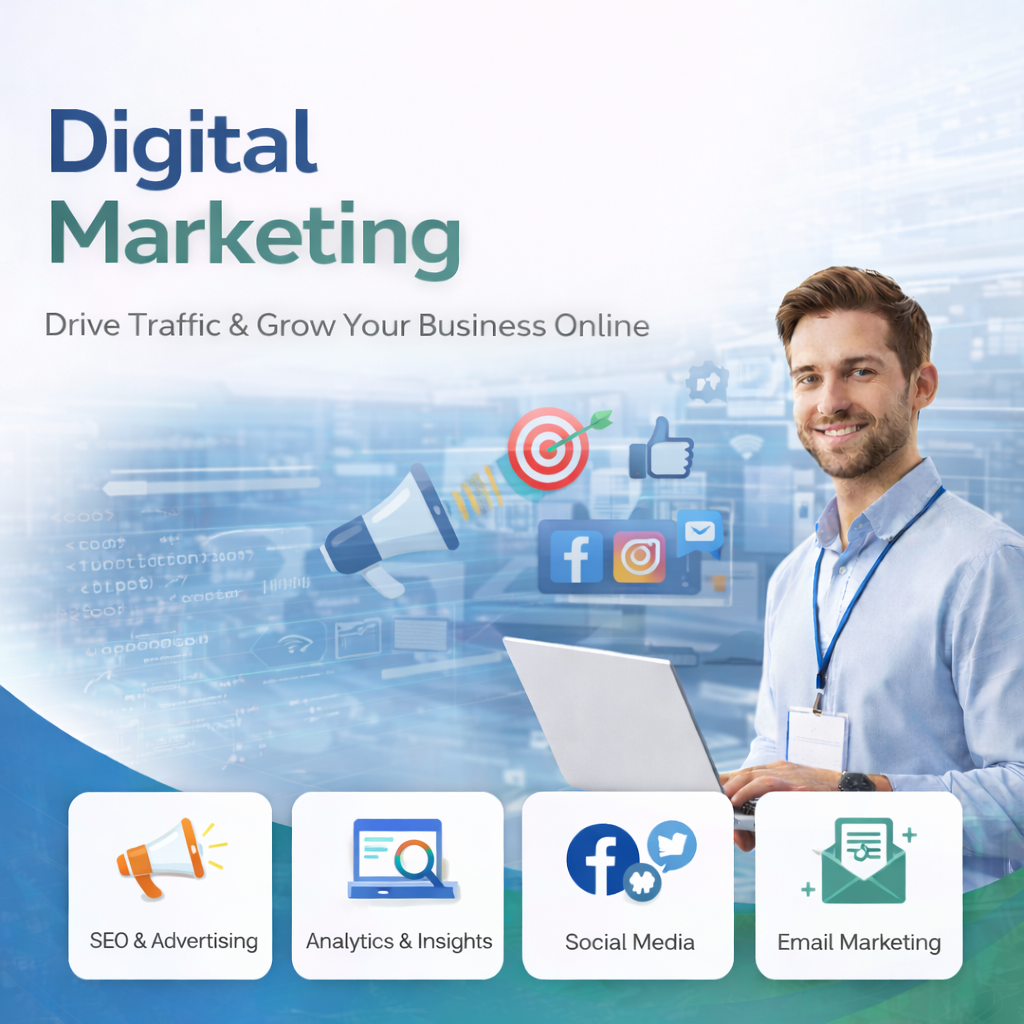 Our digital marketing strategies combine creativity, data-driven insights, and modern marketing tools to deliver measurable results. Whether you want to promote your services, improve online engagement, or expand your customer base, our solutions help your business grow in the digital marketplace.